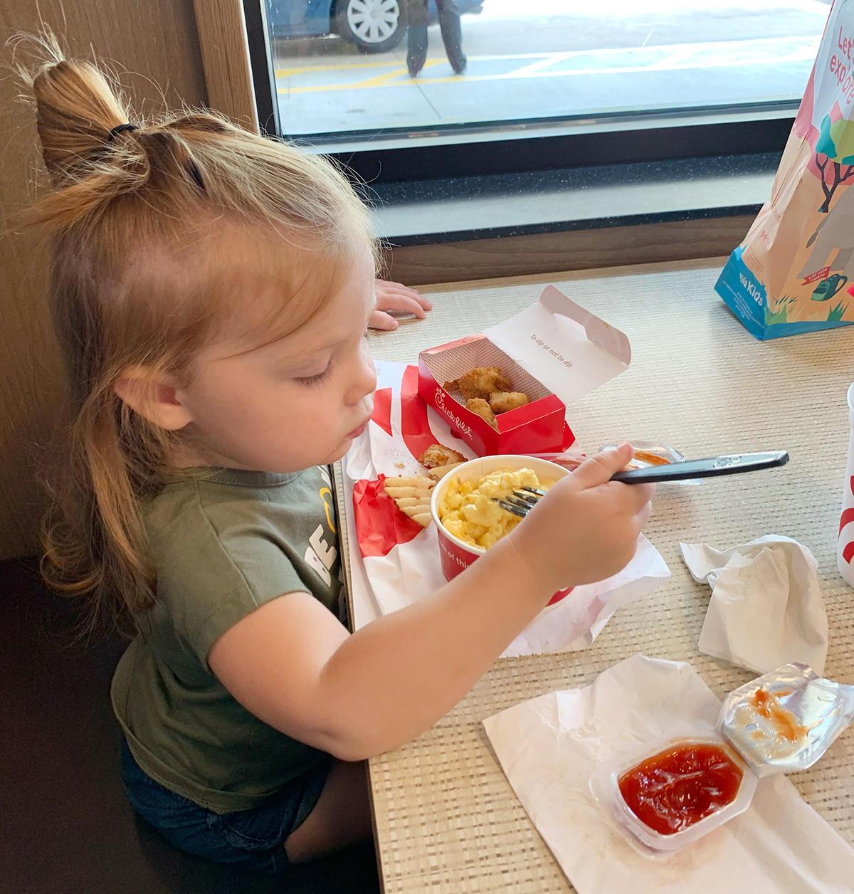 Chick-fil-A nuggets and macaroni and cheese